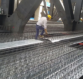 上、下弦鋼筋:采用三級(jí)熱軋盤螺鋼筋HRB400級(jí)、或冷軋帶鋼筋CRB550級(jí)。腹桿鋼筋:采用冷軋光圓鋼筋TD∨、TDM底模鋼板:根據(jù)用途不同,可采用鍍鋅鋼板或冷軋鋼板,常用厚度為0.4-0.5mm雙面鍍鋅量120gm。